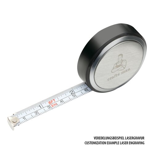 Bedruckbarer Werbeartikel: Maßband REFLECTS-TOMELLOSO schwarz, silber