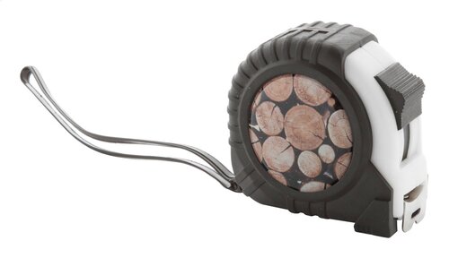Maßband (Länge: 7,5 m) mit Stopper und Handschlaufe. Material: Kunststoff mit Metallclip.
