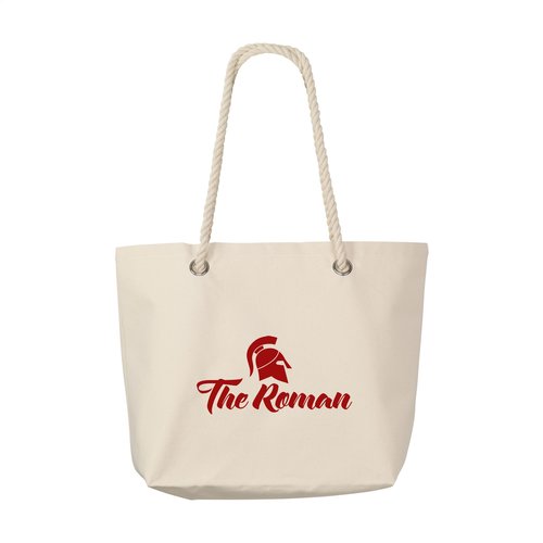 Strandtasche aus robustem Canvas (340 g/m²). Mit auffallenden Kordelgriffen und Reißverschlusstasche innen. Fassungsvermögen ca. 20 Liter.