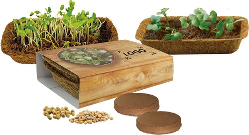 Unsere grünen Vitaminbomben sind lecker und schön anzusehen. Die gesunden Keimpflanzen verfeinern Salate oder Smoothies. Ihre grüne Werbebotschaft findet Platz auf dem Standardmotiv. Ab 250 Stück ist der Schuber ebenfalls