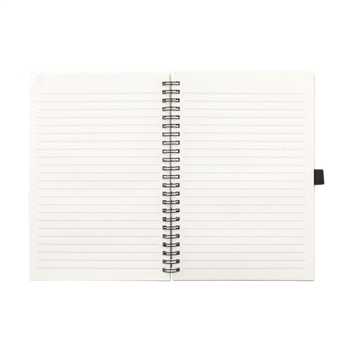 A5-Notizbuch mit einem Einband aus recycelten Milchkartons (bis zu 70%). Mit 70 Blatt/140 Seiten cremefarbenem, liniertem Papier (80 g/m²) und einer praktischen Stiftschlaufe. Gebunden in einer starken Spiralbindung. Die Milchtüten bestehen aus Aluminium, Papier und Kunststoff. Diese Materialien werden voneinander getrennt und das übrig gebliebene Papier wird verwendet, um den Umschlag dieses Notizbuchs herzustellen. Aufgrund der Verwendung von recycelten Materialien können kleine Imperfektionen im Material sichtbar sein. Dies verleiht dem Produkt ein einzigartiges Aussehen.