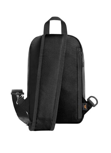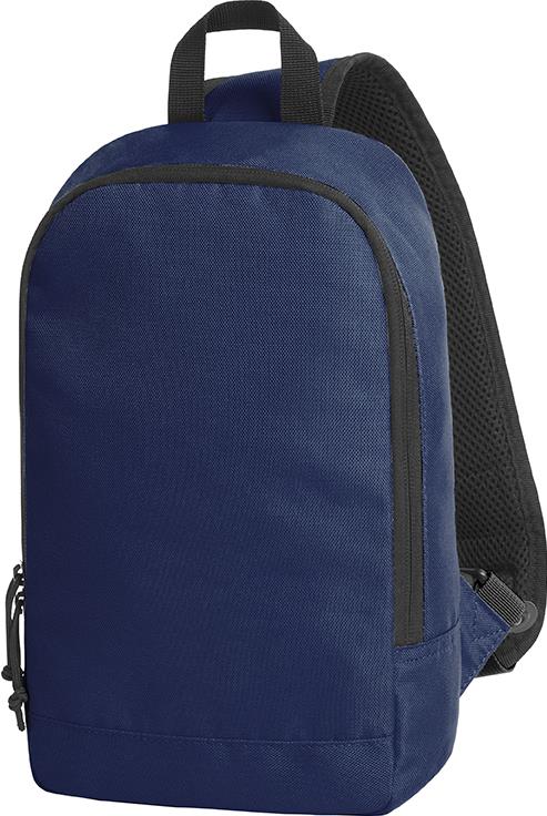 moderner Monostrap-Rucksack; Hauptfach mit 2-Wege-Reißverschluss; flaches Einsteckfach innen; rückseitiges Reißverschlussfach; gepolsterter, längenverstellbarer und beidseitig tragbarer Schultergurt; Trageschlaufe
