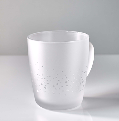 2 satinierte Glastassen Basic (34 cl) aus vollgehärtetem Glas, besonders temperaturbeständig mit Dekor. Neutraler Zweierkarton.