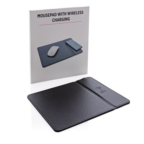PU Mousepad mit integrierter Wireless-Charging Funktion für QI-fähige Smartphones und mit Handyhalter. 40cm Micro-USB Kabel inklusive, um das Mousepad mit dem USB Port Ihres Computers zu verbinden. Input: 1A. Output: 5V/1A. Wireless Output: 5W.