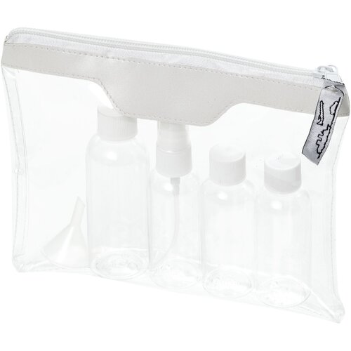 Für Flugreisen zugelassener Kulturbeutel, den Sie mit an Bord nehmen dürfen. Mit 2 x 50 ml Flaschen, 1 x 90 ml Flasche und 1 Zerstäuber und Trichter. Flaschen und Trichter im Kunststoffbeutel verpackt, werden getrennt vom Beutel geliefert. .