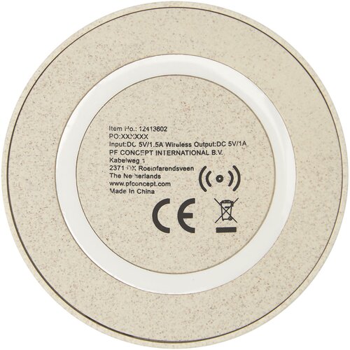 5 W kabelloses Ladepad aus Weizenstroh-Kunststoff, das zusammengemischt wird und die benötigte Kunststoffmenge reduziert. Um ein Gerät ohne drahtlose Technologie aufzuladen, ist ein externer drahtloser Ladeempfänger oder ein Empfängergehäuse erforderlich. Verpackt in einer Geschenkschachtel und wird mit einer Anleitung geliefert (beides aus nachhaltigem Material). Ein Type-C-Ladekabel ist im Lieferumfang enthalten.
