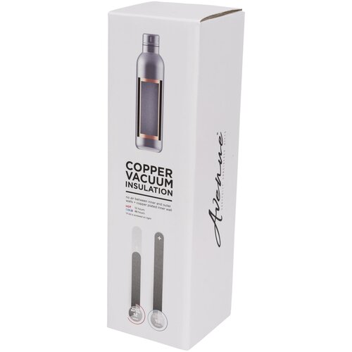 Haltbare, doppelwandige Edelstahl-Vakuumkonstruktion mit Kupferisolierung, die dafür sorgt, dass Ihre Getränke 48 Stunden lang kalt und mindestens 12 Stunden lang warm bleiben. Die Konstruktion verhindert außerdem Kondensation an der Außenseite der Flasche. Trendige, haltbare Pulverbeschichtung. Auslaufsicherer Schraubdeckel aus Edelstahl. Fassungsvermögen 510ml. In einem Avenue-Geschenkkarton präsentiert.