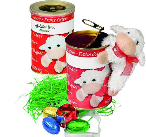 Die handliche Dose mit Aufreißdeckel verbirgt österliche Überraschungen. Der Anziehungspunkt ist das magnetische Lämmchen, das überall auf Metall seinen Platz findet. Für Ihren Werbeeindruck in das Standardmotiv bietet die umlaufende Banderole Platz.Alternativ ist eine eigene Gestaltung der Banderole ebenfalls ab 250 Stück möglich.