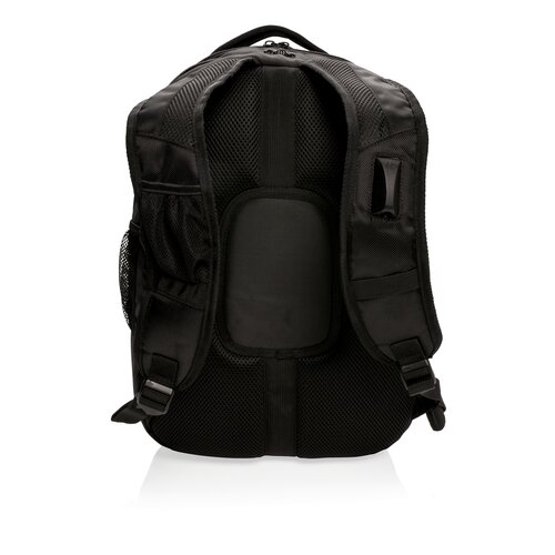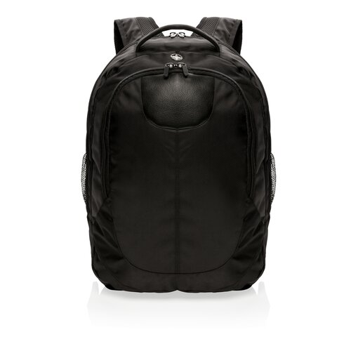 1680D Polyester Laptop-Rucksack mit einzigartiger Balance zwischen Tragekomfort und Outdoorschutz. Der Rucksack beinhaltet alle erdenklichen Details - vom gepolsterten Laptopfach und iPad Halter, bis hin zum Stiftehalter und diversen Netztaschen. Am Trageriemen befindet sich ein Audio-Stecker, um Ihre Kopfhörer zu verbinden und ein Sonnenbrillenetui. Als Extra ist sogar ein Regenschutz vorhanden. Geschütztes Design®
