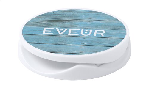 Runder Handyhalter aus Kunststoff mit selbstklebender Rückseite.