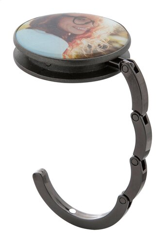 Taschenhalter aus Metall mit Gunmetall-Oberfläche, glänzendem Plättchen und Magnetverschluss.