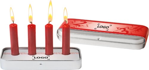 Traditionell werden in der Adventszeit nacheinander 4 Kerzen angezündet. Unser Pocket-Adventskranz findet überall Platz und kann jedes Jahr wieder verwendet werden. Praktisch in einer Metallbox verstaut, lässt er sich einfach überreichen. Platz für Ihren Werbeeindruck (ab 250 Stück) ist auf den Standardmotiven des Steckeinsatzes und der Banderole oder jeweils eine eigene Gestaltung ab 250 Stück.