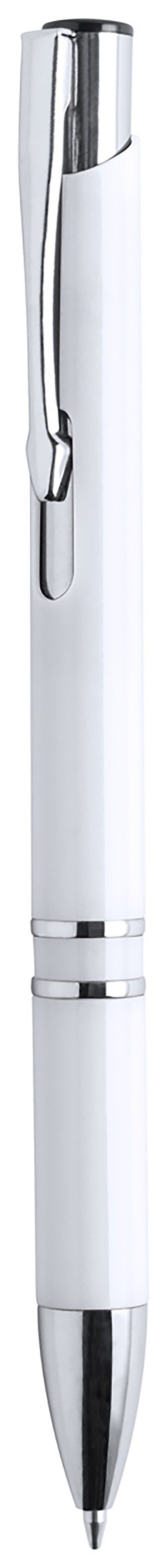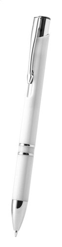 Kunststoff-Kugelschreiber mit glänzender Spitze und Clip, blauschreibend.