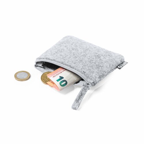 Stilvolles Portemonnaie aus Filz-RPET. Hauptfach mit Reißverschluss und passendem Puller. Außenetikett mit dem Erkennungsmerkmal von Felt RPET.Felt RPET ist das Ergebnis der Kombination der Recyclingprozesse von Kunststoffen mit der jahrtausendealten Technik der Filzherstellung, was zu einem Öko-Trend-Material führt, das nicht nur recycelten Ursprungs ist, sondern auch wiederverwertet werden kann.