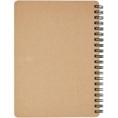 Notizbuch mit Deckel aus Recyclingkarton, 60 Blatt liniertem Recyclingpapier und passendem Stift. Das Notizbuch und der Stift sind zusammen verpackt.
