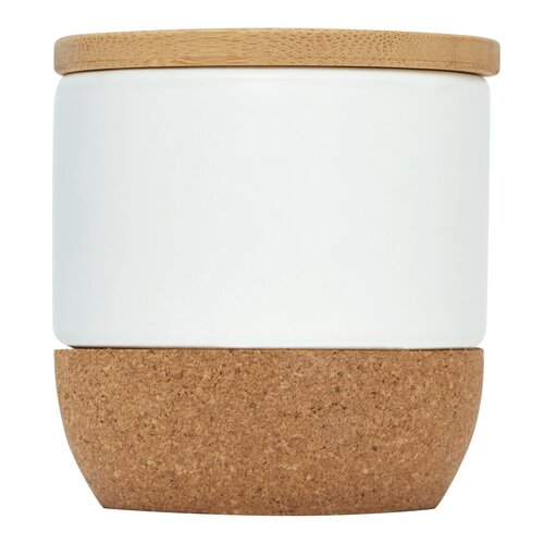 Duftkerze PURE BREEZE: im Becher aus Keramik mit Korkboden, Wachs mit Duft nach Vanille, abnehmbarer Bambusdeckel mit Silikon-Dichtring, Brenndauer ca. 20 Stunden, in Box