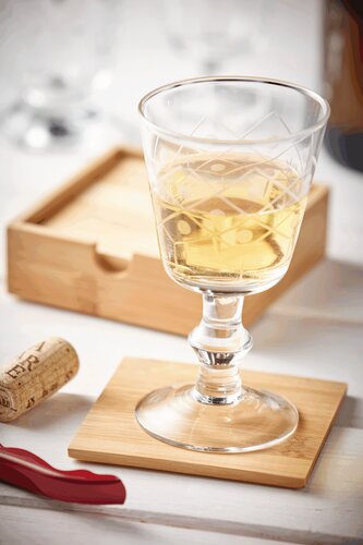 Untersetzer-Set PUT UNDER, 5-teilig: bestehend aus 4 Untersetzern und Bambus-Box, mit großer Fläche für eine Werbeanbringung