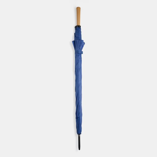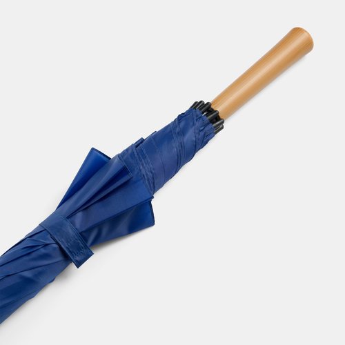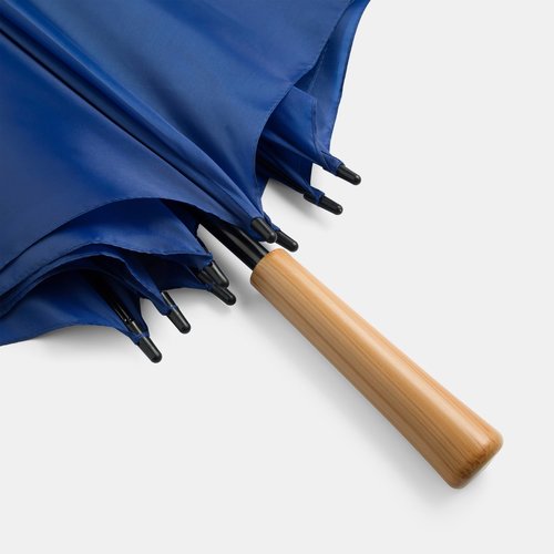 Golfschirm RAINDROPS: Metallstock und Doppelmetallspeichen, Kunststofftipps, Griff in Holz-Optik, Polyester-Bespannung, Schließband mit Klettverschluss