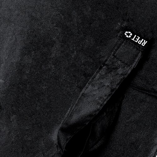Faltschirm mit 97 cm Durchmesser. Aus 190T RPET Pongee-Material. Manuelle Öffnung, mit Anti-Wind-System und Rippen aus Fiberglas. Ergonomischer Griff mit elegantem Bambusdetail, leicht zu tragen dank des Kordelzugs, der Hülle und des passenden Klettverschlusses. Mit unverwechselbarem RPET-Etikett. Präsentiert in einer individuellen, recycelten Tasche.Das RPET-Material wird aus recyceltem Kunststoff hergestellt, wodurch die Wiederverwendung von Kunststoffabfällen gefördert und ein Beitrag zur Nachhaltigkeit unseres Planeten geleistet wird.