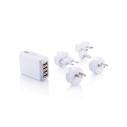 Reiseadapter mit 4fachem USB Anschluss weiß
