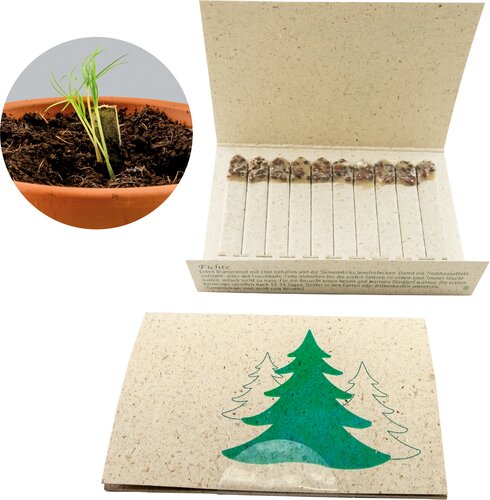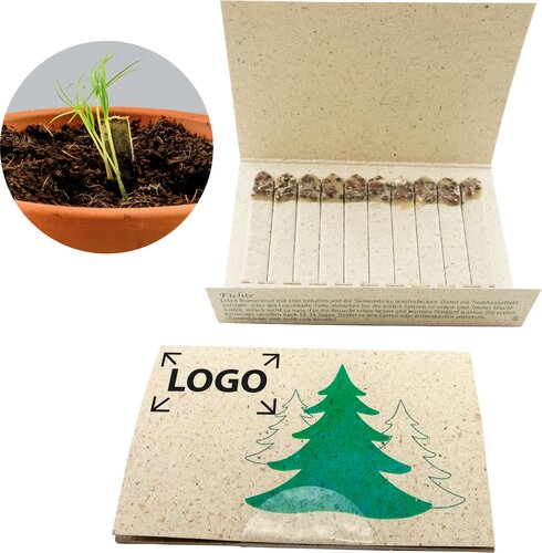 Ein naturiges und nachhaltiges Giveaway aus Graspapier mit Fichten-Samen für Ihren Weihnachtsbaum. Das Booklet bietet viel Platz für Ihren Werbeeindruck im Standardmotiv oder auch für Ihre eigene Gestaltung ab 250 Stück.