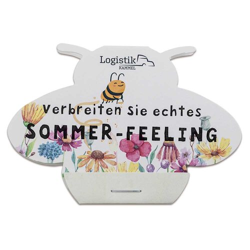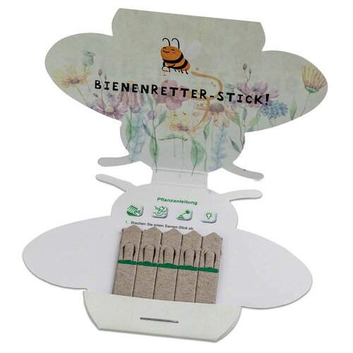 Frühlings- und Sommergrüße oder einfach von Herzen Danke sagen! Anlässe für einen Werbegruß gibt es viele. Mit den Samen-Sticks gelingt einem dabei noch ein Überraschungseffekt: Denn im flachen Briefchen aus Papier erwarten einen keine Streichhölzer, sondern grüne Werbegrüße, die sich durch die flache Form und das geringe Gewicht perfekt als Mailingartikel eignen.Auf fünf kleine Sticks aus Papier werden Basilikumsamen aufgebracht. Wird ein Stick in Erde gesteckt und gegossen, sprießt schnell ein kleines Pflänzchen. In Bienenform können sie je nach Werbethema die Botschaft durch die Form unterstützen und individuell anpassen. Das Briefchen selbst ist auf vier Seiten individuell gestaltbar. Das Papier ist komplett biologisch abbaubar und unterstützt einmal mehr den grünen Werbegedanken. Eine Pflanzanleitung komplettiert das grüne Werbemittel.