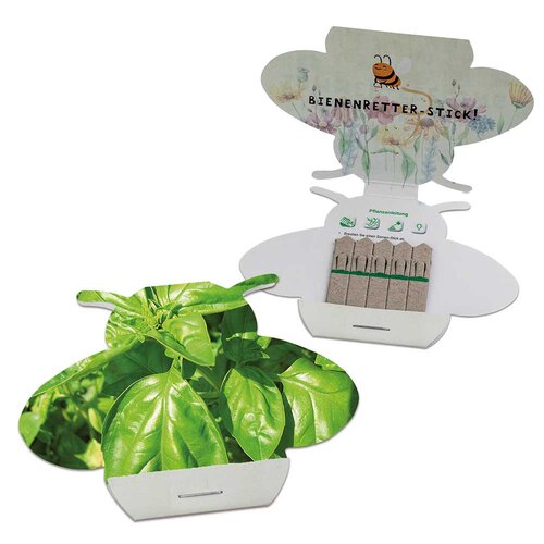 Bedruckbarer Werbeartikel: Samen-Stick - Biene - Basilikum individuell