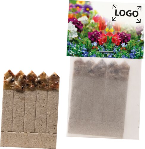 ein. Gleichzeitig wird weniger Zellstoff aus Holz oder Recyclingpapier benötigt. Die fünf Sticks sind mit Samen für eine bunte Blumenmischung bestückt. Ab 250 Stück kann der Header