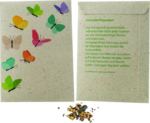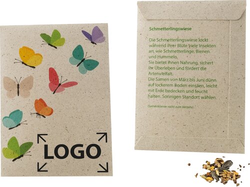 Unser Samentütchen Graspapier ist die trendige und nachhaltige Art Blumensamen einem Mailing beizulegen oder als Streuartikel auszugeben. Die geklebte Tüte ist aus Graspapier hergestellt. Der schnell nachwachsende Rohstoff Gras ist eine hervorragende natürliche und nachhaltige Verpackungsmöglichkeit. Ab 1.000 Stück ist eine individuelle Gestaltung möglich.