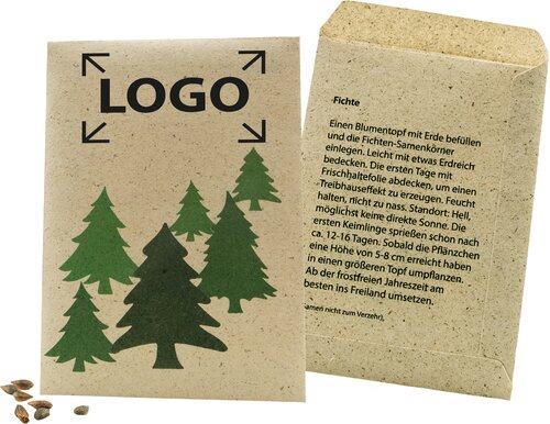 Unser Samentütchen Graspapier ist die trendige und nachhaltige Art Weihnachtsbaumsamen einem Mailing beizulegen oder als Streuartikel auszugeben. Die geklebte Tüte ist aus Graspapier hergestellt. Der schnell nachwachsende Rohstoff Gras ist eine hervorragende natürliche und nachhaltige Verpackungsmöglichkeit. Ab 1.000 Stück ist eine individuelle Gestaltung möglich.