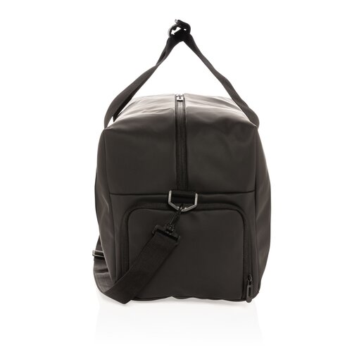 Diese Wochenendtasche aus glattem PU eignet sich für tägliche Ausflüge ins Fitnessstudio sowie für einen Wochenendausflug. Sie verfügt über ein kastenförmiges, minimalistisches Design, eine Außentasche vorne, eine Innentasche und ein großes Hauptfach. Zudem hat die Tasche ein praktisches Schuhfach an der Seite. Mit dem verstellbaren Gurt kann sie über der Schulter oder quer getragen werden, oder Sie halten Sie in der Hand mit den stabilen Stoffgriffen. Außen 100% PU. Innen aus 100% 210D Polyester. PVC-frei.