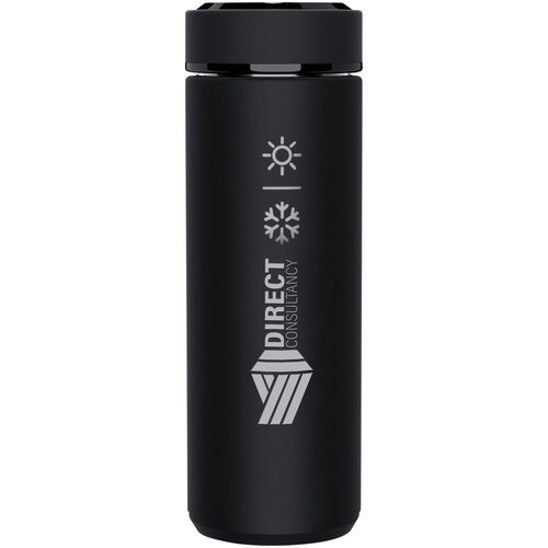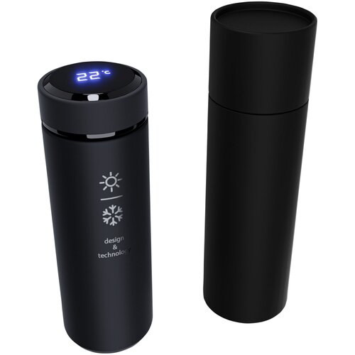 Doppelwandige, isolierte 450 ml Edelstahlflasche mit einem Temperatursensor. Dank des "Touch & Light"-Systems wird die Temperatur des Getränks auf dem Flaschendeckel angezeigt (in Celsius). Sowohl für heiße als auch für kalte Getränke geeignet. Wird in einer zylindrischen Geschenkbox aus Recyclingpapier geliefert. Größe: Ø 47 x 225 mm. Inklusive Batterie: CR 2450 (3V). Die Batterie kann nicht ausgetauscht werden. Kann die Temperatur 20.000 Mal anzeigen.
