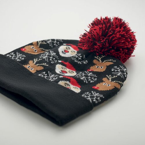 Weihnachtliche Strickmütze mit Bündchen und Bommel aus weichem, elastischem Acryl.