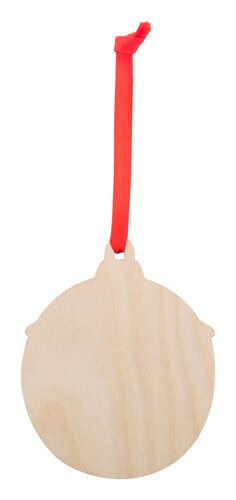 Weihnachtsbaumschmuck aus Birkensperrholz, mit aufgedrucktem Weihnachtsmotiv und rotem Band (separat beiliegend).