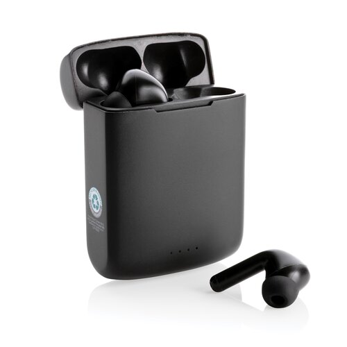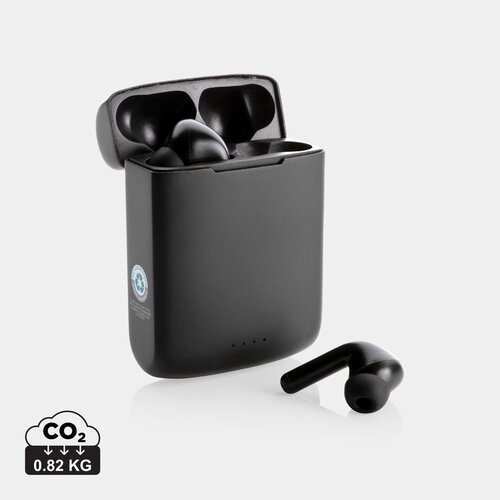 Einzigartige, zweifach aufladbare kabellose Ohrhörer aus RCS-zertifiziert recyceltem ABS mit integriertem Solarpanel im Gehäuse . Gesamter recycelter Inhalt: 21% basierend auf dem Gesamtgewicht des Artikels. Die RCS-Zertifizierung gewährleistet eine vollständig zertifizierte Lieferkette für die recycelten Materialien. Der Lautsprecher verwendet hochwertige monokristalline Solarzellen mit einer Umwandlungsrate von 19%. Ladegeschwindigkeit hängt von den Umgebungsbedingungen ab. Aufladegeschwindigkeit Solar: 5V/50mA. Die passgenauen Ohrhörer verfügen über einen 35mAh-Akku und können in dem 300mAh-Lade-Case innerhalb von 2h wieder aufgeladen werden. Mit automatischer Kopplungsfunktion. Spieldauer bei mittlerer Lautstärke bis zu 5h. Mit BT 5.3 für eine optimale Verbindung auf bis zu 10m. Mit Anruf-Annahme und Mikrofon. Inklusive Silikon-Ohrstöpsel in 3 Größen. Inklusive RCS-zertifiziert recyceltem TPE-Ladekabel. Verpackt in FSC®-Mix-Kraftverpackung. Artikel und Zubehör 100% PVC-frei.