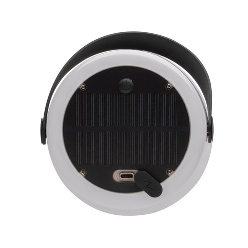 LED-Solartischleuchte aus RCS-zertifiziert recyceltem ABS. Gesamter recycelter Inhalt: 71% basierend auf dem Gesamtgewicht des Artikels. Die RCS-Zertifizierung gewährleistet eine vollständig zertifizierte Lieferkette für die recycelten Materialien. Die Taschenlampe verwendet eine wiederaufladbare A-Grade Lithiumbatterie mit 1200 mAh, so dass die Batterien nicht ausgetauscht werden müssen. Einfach über die USB-Buchse und den integrierten Type-C-Anschluss aufladen. Inklusive 80cm langem Ladekabel. Aufladezeit über Kabel: ca. 3 Stunden. 10 Stunden in hellem Sonnenlicht ergeben bis zu 3-4 Stunden Betriebszeit. Betriebszeit bei voller Ladung: ca. 20 Stunden. IPX 4 wasserdicht.