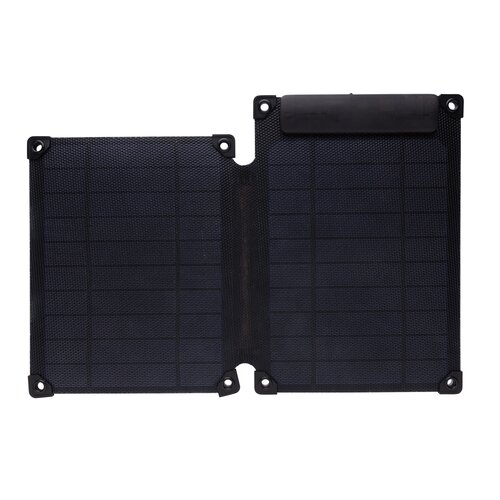 10W doppelt faltbares Solarpanel, mit dem Sie Ihr mobiles Gerät, Ihren Lautsprecher, Ihre Powerbank oder ein anderes Gerät direkt aufladen können. Schließen Sie einfach Ihr Kabel an das Gerät an, während das Panel im Sonnenlicht steht, und starten Sie den Ladevorgang. Die Ladegeschwindigkeit hängt von den Umgebungsbedingungen ab. Das Panel verwendet hochwertige monokristalline Solarzellen mit einer Umwandlungsrate von 21%. Mit USB-A- und Typc-C-Ausgang (max. 5V/1A) sowie einer Anzeige der Ladegeschwindigkeit. Aufladegeschwindigkeit Solar: 5V/2000mA. Hergestellt aus PET-Material und RCS-zertifizierte recyceltem ABS. Mit integrierter Standfunktion, um die Solarzellen in einem optimalen Winkel zu verwenden. Wasserdicht nach IPX 6. Verpackt in FSC®-Mix-Verpackung.