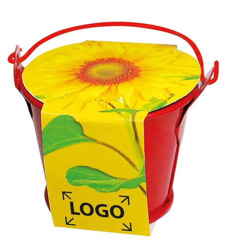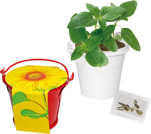 Das Zinkeimerchen (wahlweise in weiß oder rot) ist ein sympathischer Werbeträger. Die Samen für Zwergsonnenblumen können direkt im Tontöpfchen eingesät werden.Die Banderole bietet viel Platz für Ihre Werbebotschaftoder, ebenfalls ab 250 Stück für Ihre individuelle Gestaltung.