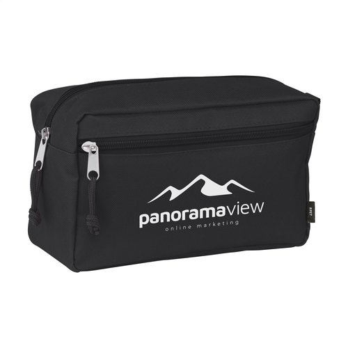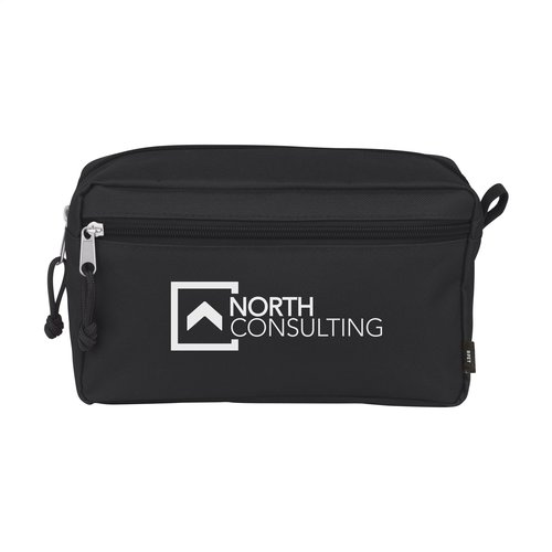 WoW! Eine geräumige Tasche zum Aufbewahren von Make-up oder Toilettenartikeln. Dieses Produkt wird aus 600D-RPET-Polyester hergestellt, einem Material aus recycelten PET-Flaschen und Textilfasern. Ausgestattet mit einer Schlaufe und extra Reißverschlussfach. GRS-zertifiziert. Recyceltes Material insgesamt: 90%.
