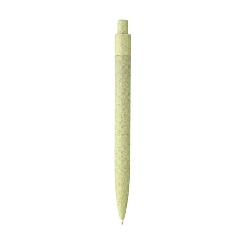 Umweltfreundlicher, blauschreibender Kugelschreiber, hergestellt aus 60% Weizenstroh und 40% ABS. Griff, Clip und Druckknopf sind aus den Resten geernteter Weizenstängel gefertigt. Mit großzügigem Clip für auffälligen Aufdruck.