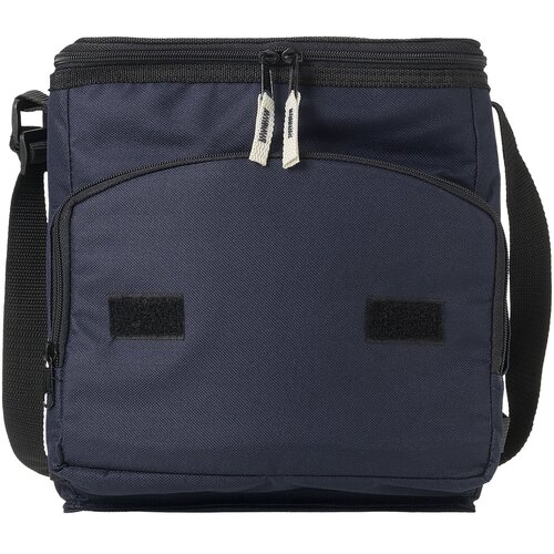 Zusammenfaltbare Kühltasche mit Hauptfach mit Reißverschluss und Fronttasche mit Reißverschluss. Verstellbarer Schulterriemen. Die Kühltasche kann dank des Klettverschlusses an der Fronttasche flach zusammengefaltet werden.