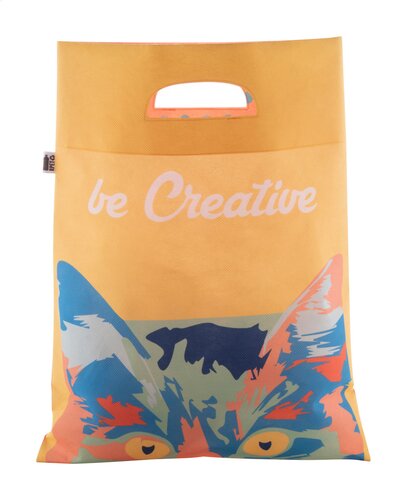 Individuelle Einkaufstasche aus RPET Non-Woven (80g/m²) mit ausgestanzten Henkeln. Der Preis ist inkl. Sublimationsdruck auf beiden Seiten. Mindestmenge: 50 Stk. Mit RPET-Label.