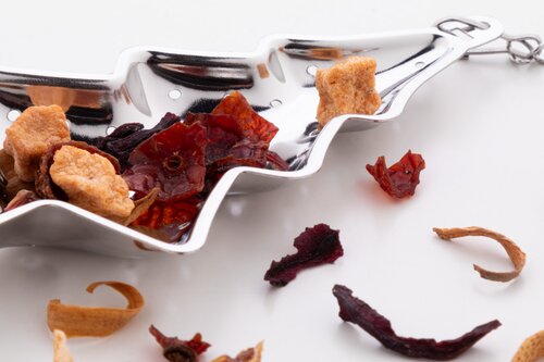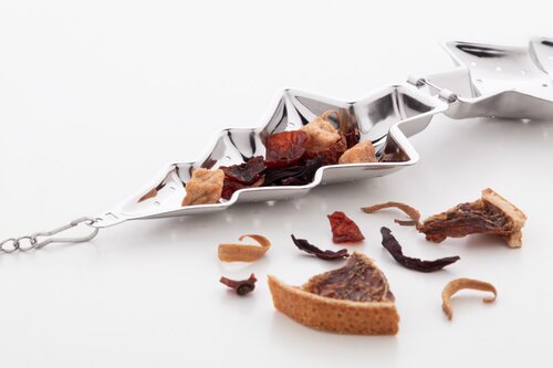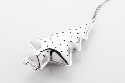Weihnachts-Tee-Ei aus Edelstahl mit Kette und Clip und bedruckbarer Fläche auf einer Seite.