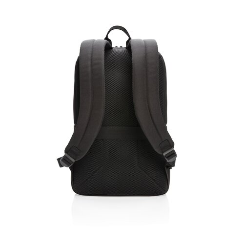 Dieser stilvolle Handgepäck-Laptop-Rucksack ist für Geschäfts- und Urlaubsreisen gedacht. Er hat ein gepolstertes 15,6" Laptopfach sowie einen Trolley-Gurt und einen USB A-Ausgang. Zudem findet sich ein seitliches Schnellzugriffsfach mit RFID-Schutz ( NFC 13,56 MHz blockierend). Die Vorderseite ist mit reflektierenden Sicherheitsstreifen versehen. PVC-frei. Mit AWARE™ Tracer, der die tatsächliche Verwendung von recycelten Materialien bestätigt. Zudem werden 2% des Erlöses jedes verkauften Aware™-Produkts an Water.org gespendet.
