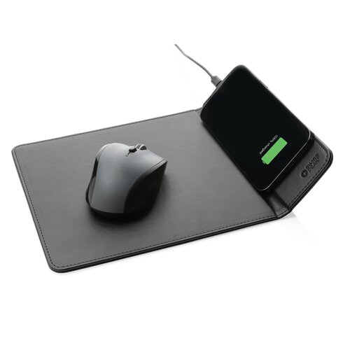 Swiss Peak RCS recyceltes 10W Wireless-Charging PU Mauspad schwarz