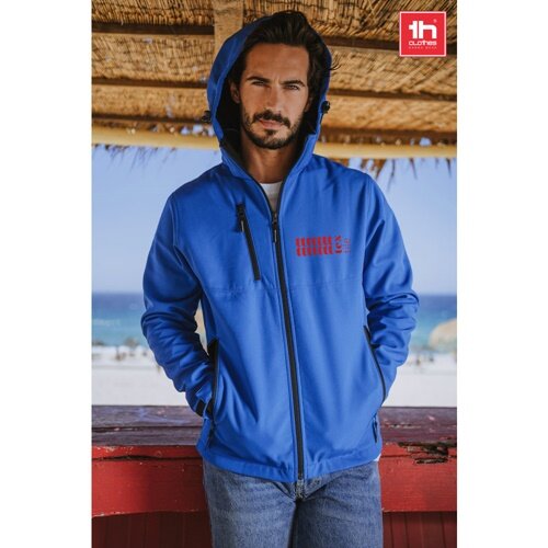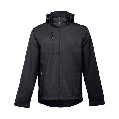 Herren Softshell Jacke aus 96% Polyester und 4% Elasthan (280g/m²) mit abnehmbarer, wasserabweisender und zweischichtiger Kapuze. Diese Jacke ist mit Fleecefutter ausgestattet, hat 2 Vordertaschen mit Reißverschluss und eine diagonale Brusttasche. Auch hat diese verstellbare Ärmelbündchen mit Klettverschluss, eine abnehmbare Kapuze mit Kordelzug, einen verstellbaren Stopper und Klettverschluss. Abgerundete Rückenseite. Größen: S, M, L, XL, XXL