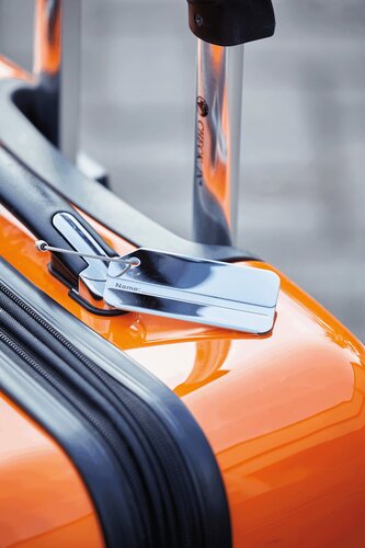 Kofferanhänger TRAVELLER: mit integrierter Adresskarte, stabiler Metalldraht mit sicherem Verschluss zum leichten Befestigen am Gepäck, aus Edelstahl