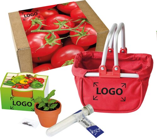 Unser Utensilo „Naschgemüse“ ist ein komplettes Anzucht-Set für Naschtomaten mit Meersalz und einem leckeren Rezept auf der Banderole. Der Werbedruck erfolgt auf dem Standardmotiv, ab 250 Stück ist eine individuelle Banderolengestaltung möglich