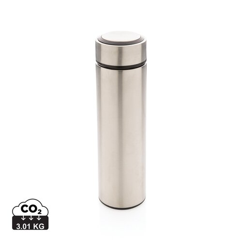 Halten Sie Ihren Kaffee oder Tee mit dieser Vakuum-Edelstahlflasche mit gebürstetem Metalldeckel schön warm. Die Flasche verfügt über einen auslaufsicheren Schraubdeckel und ermöglicht das Trinken von jeder Seite. Mit breiter Öffnung für eine einfache Reinigung. Kapazität 450ml. BPA-frei. Nur Handwäsche.