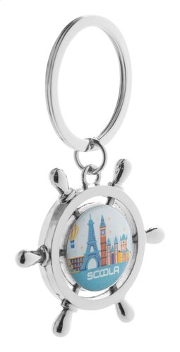 Metall-Schlüsselanhänger in Steuerradform. Einzeln in schwarzer Geschenkbox.